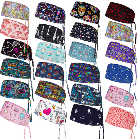 Adjustable Medical Surgery Caps 100% Cotton Cartoon Printed Lovely Working Hats Nurse Surgical Scrub Caps With Scrub Hat